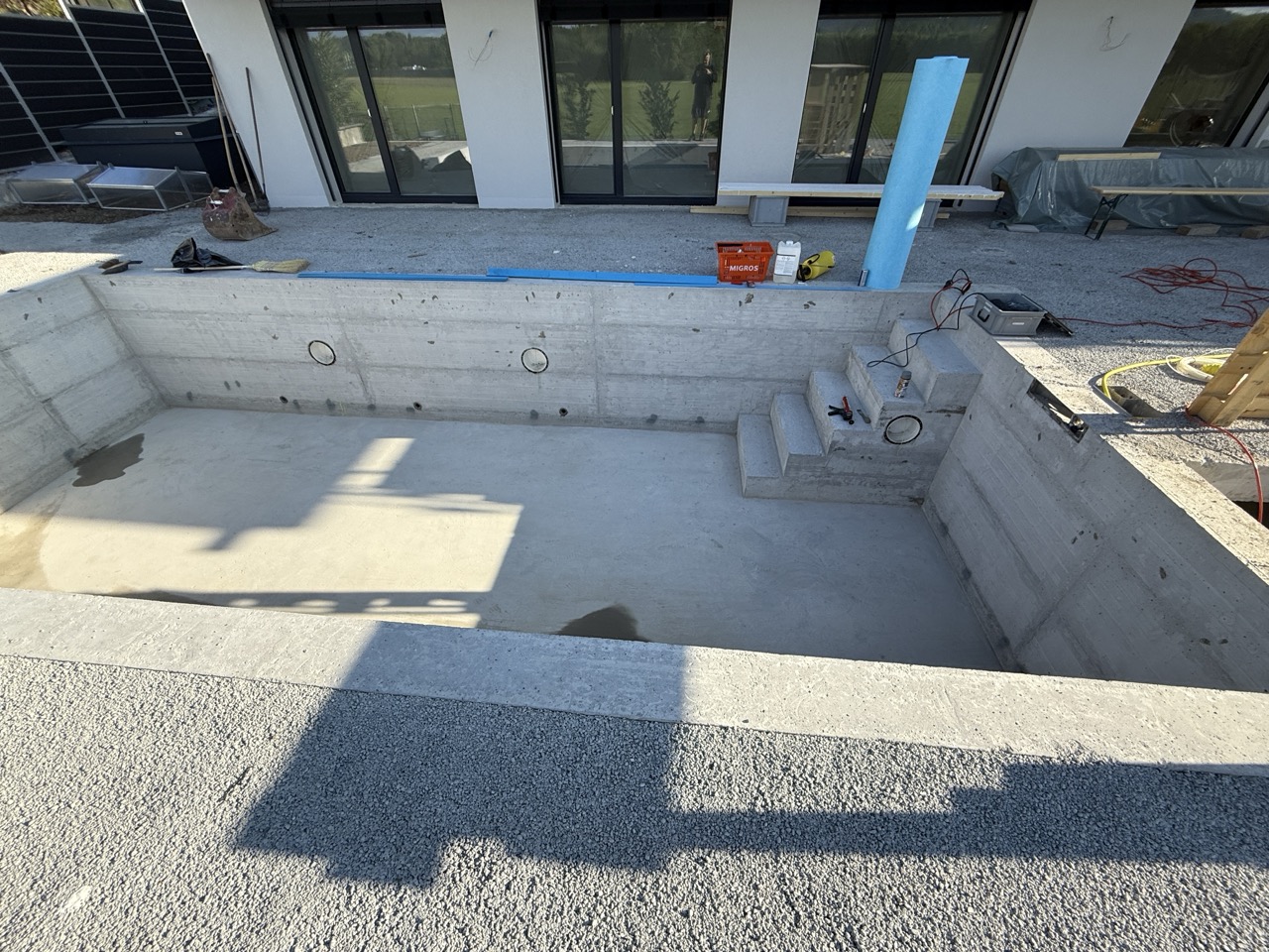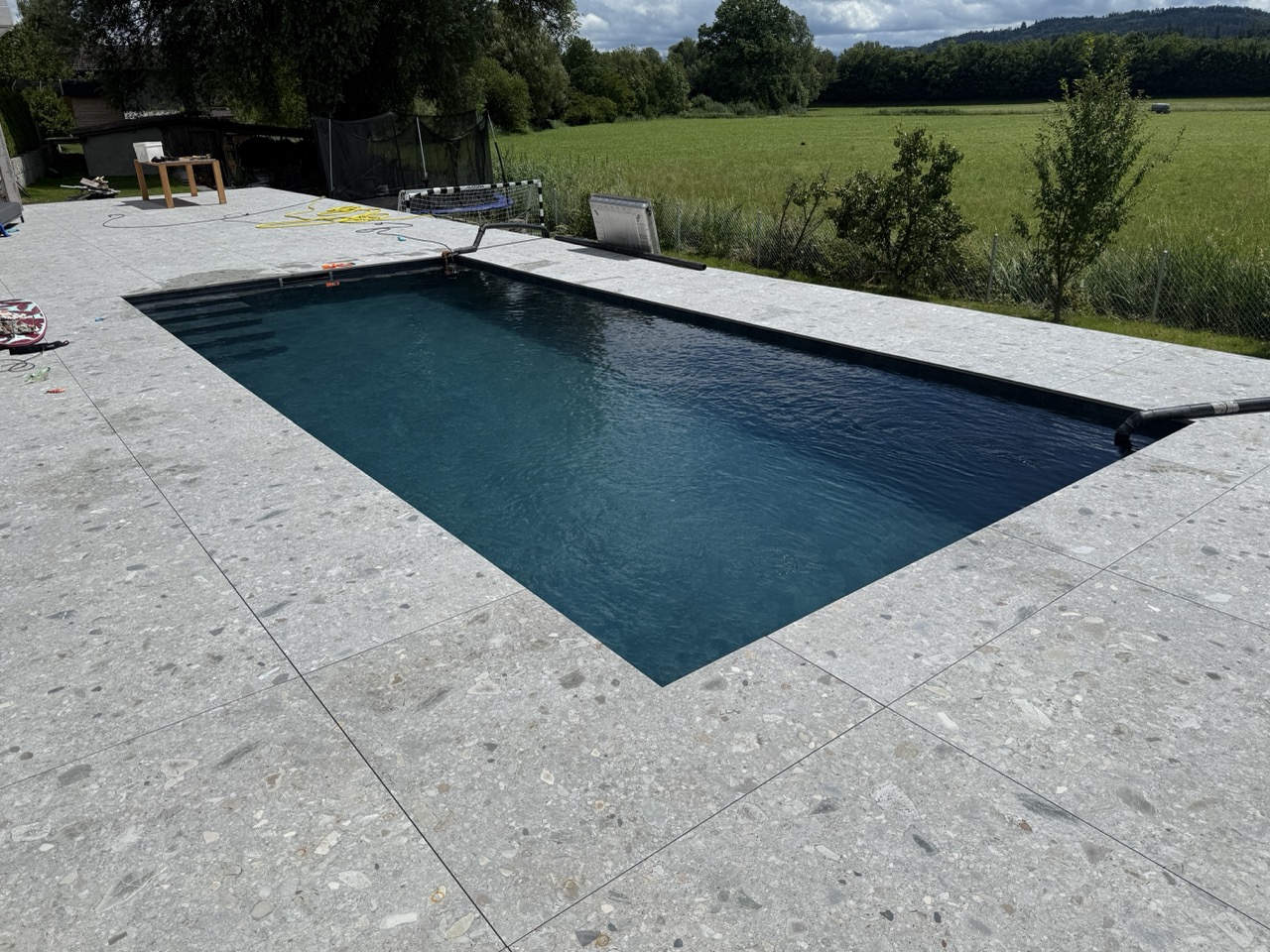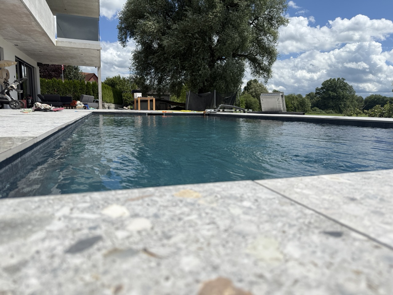 Wir durften einen Betonpool mit einer Folienauskleidung von Renolit ausstatten.