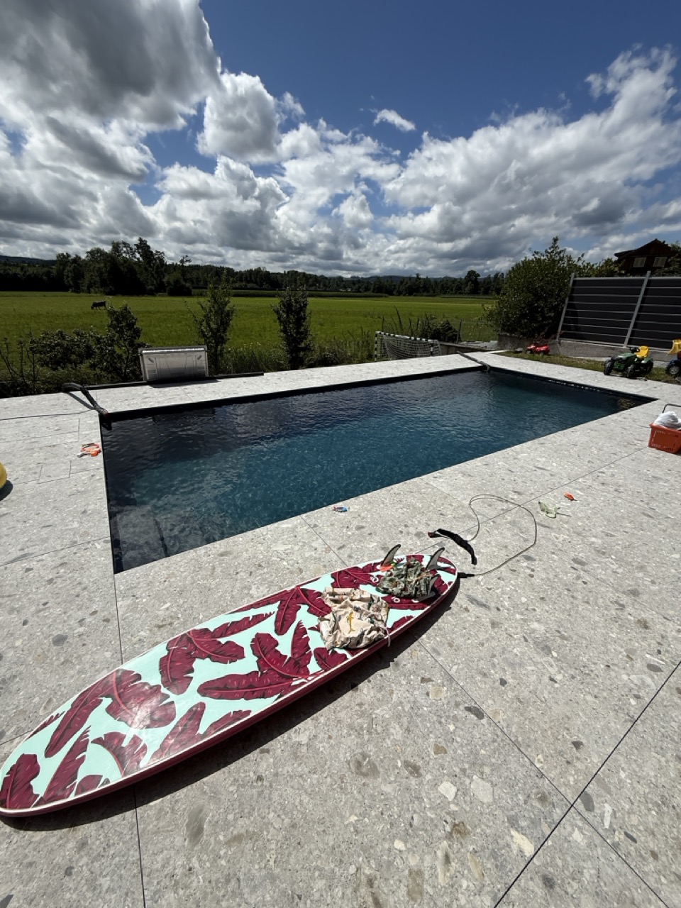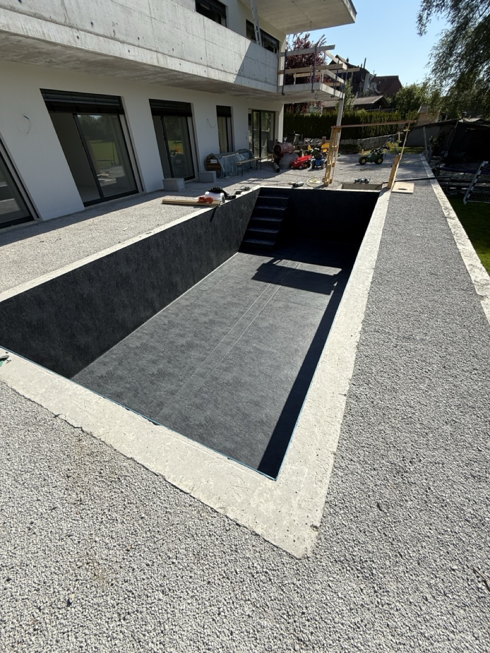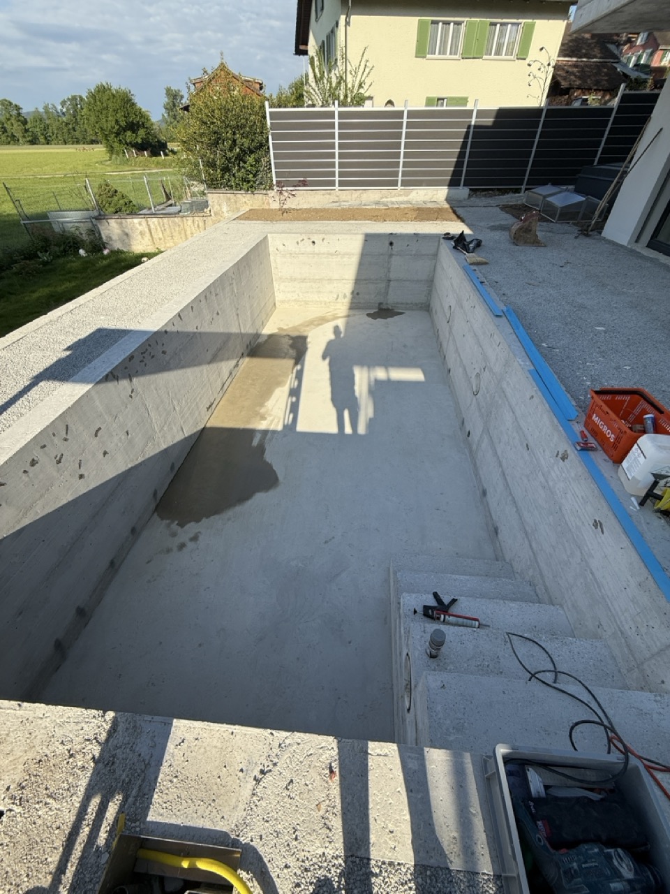Wir durften einen Betonpool mit einer Folienauskleidung von Renolit ausstatten.
