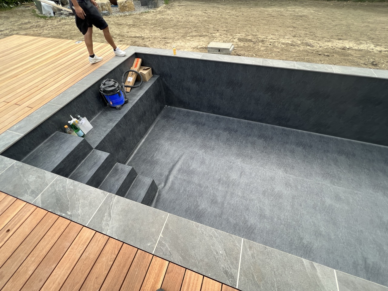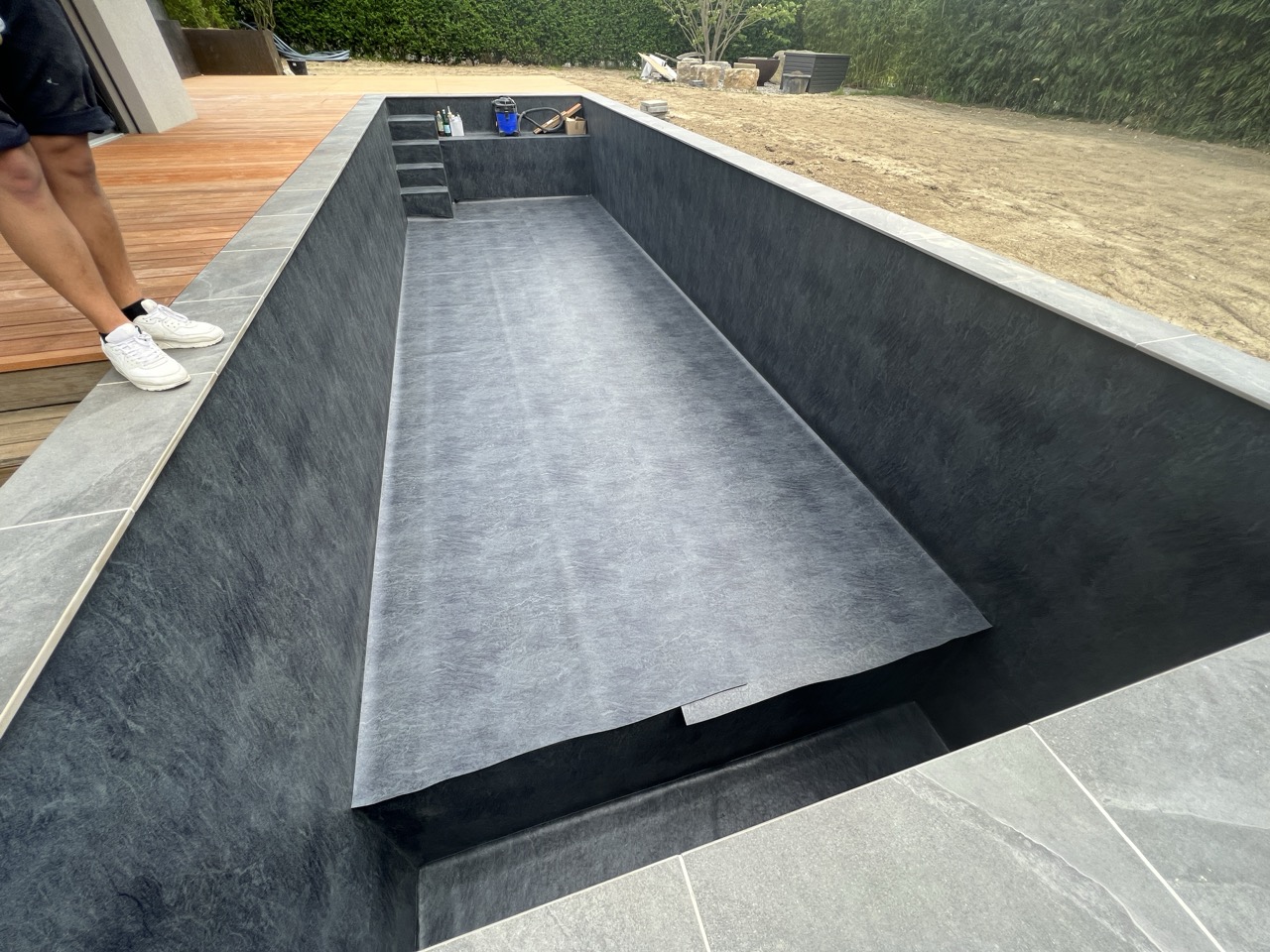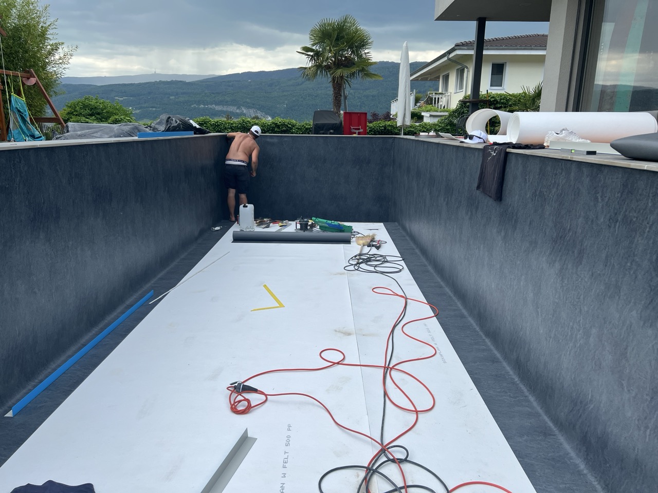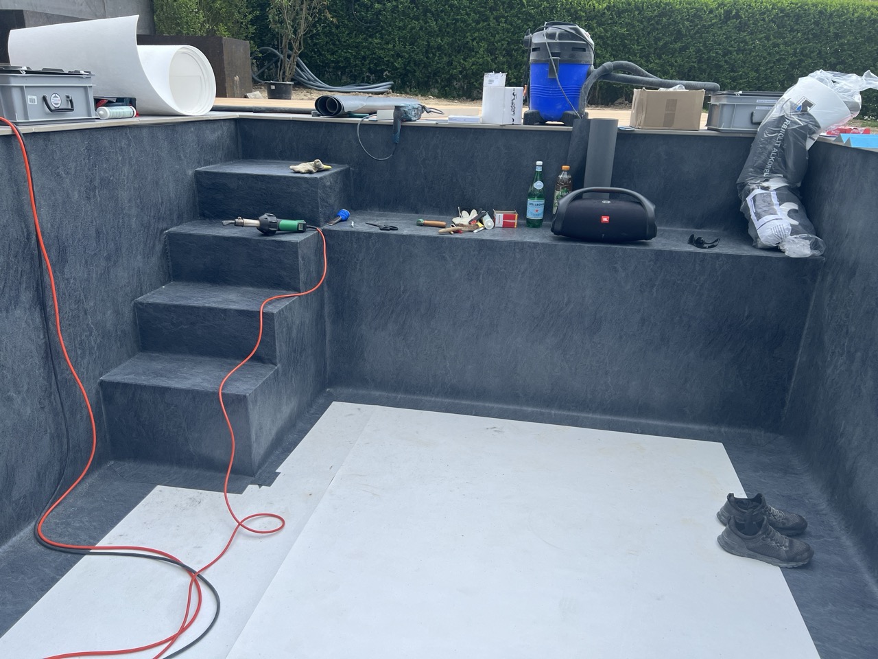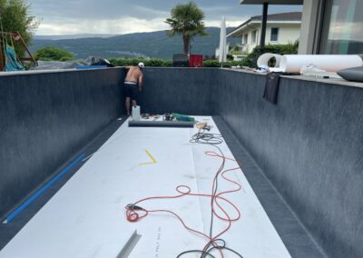 Wir durften für unseren Auftraggeber eine Folienauskleidung in einen neuen Betonpool erstellen.