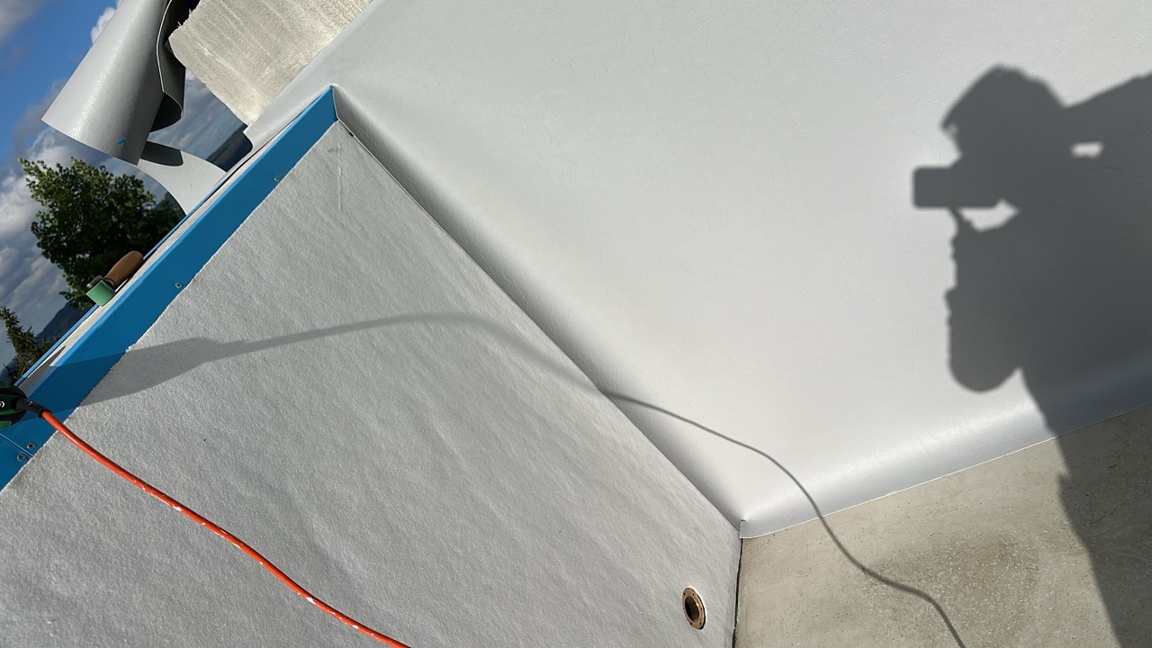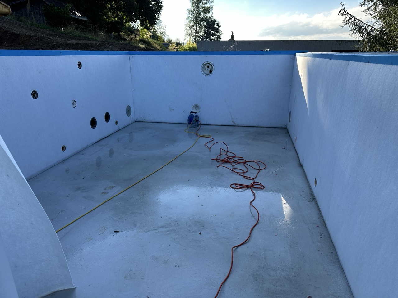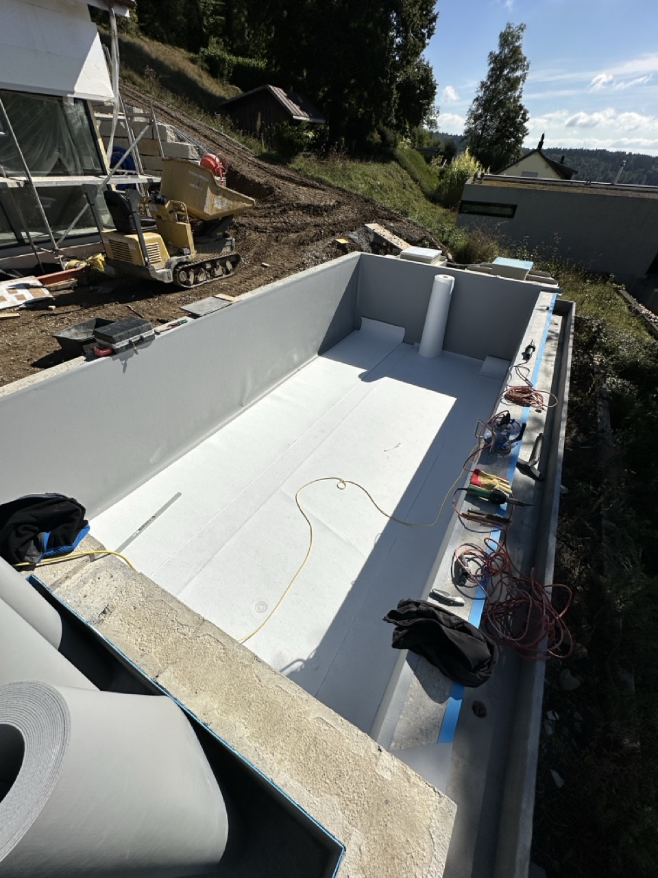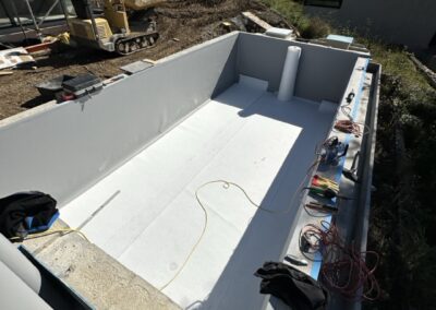 Wir durften für unseren Auftraggeber ein neu gebautes Betonbecken mit integriertem Whirlpool mit Folie auskleiden.