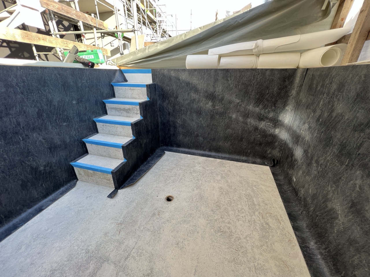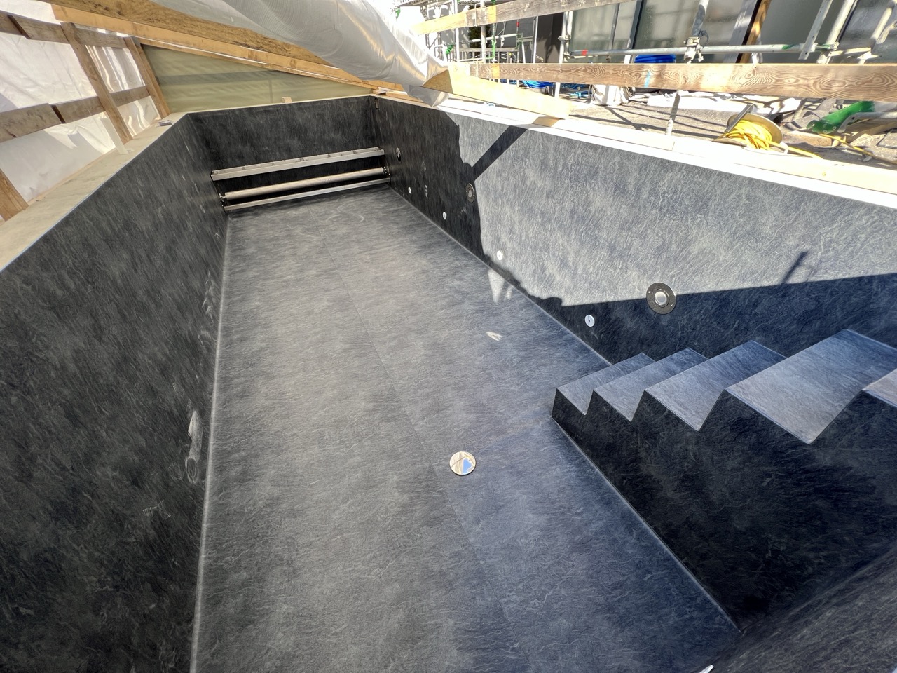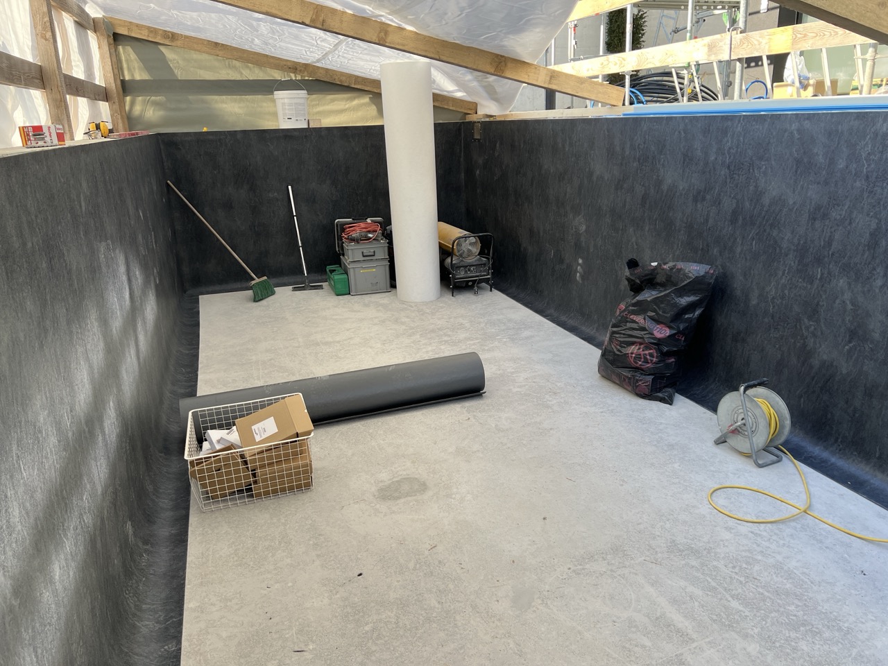 Wir durften für unseren Auftraggeber eine Folienauskleidung in einem neuen Betonpool erstellen.