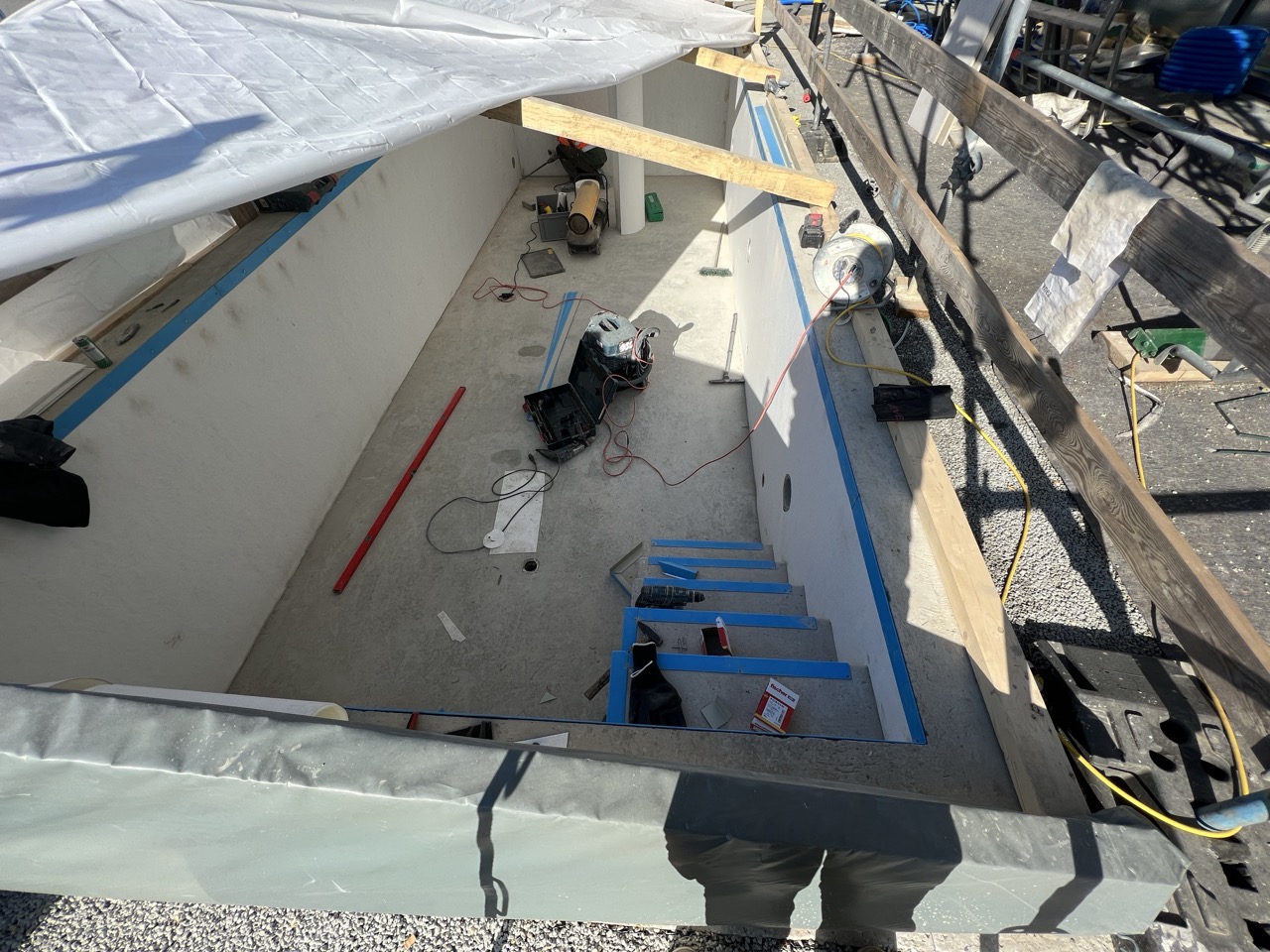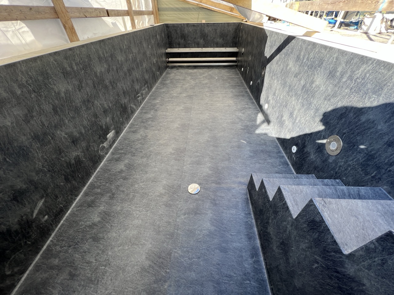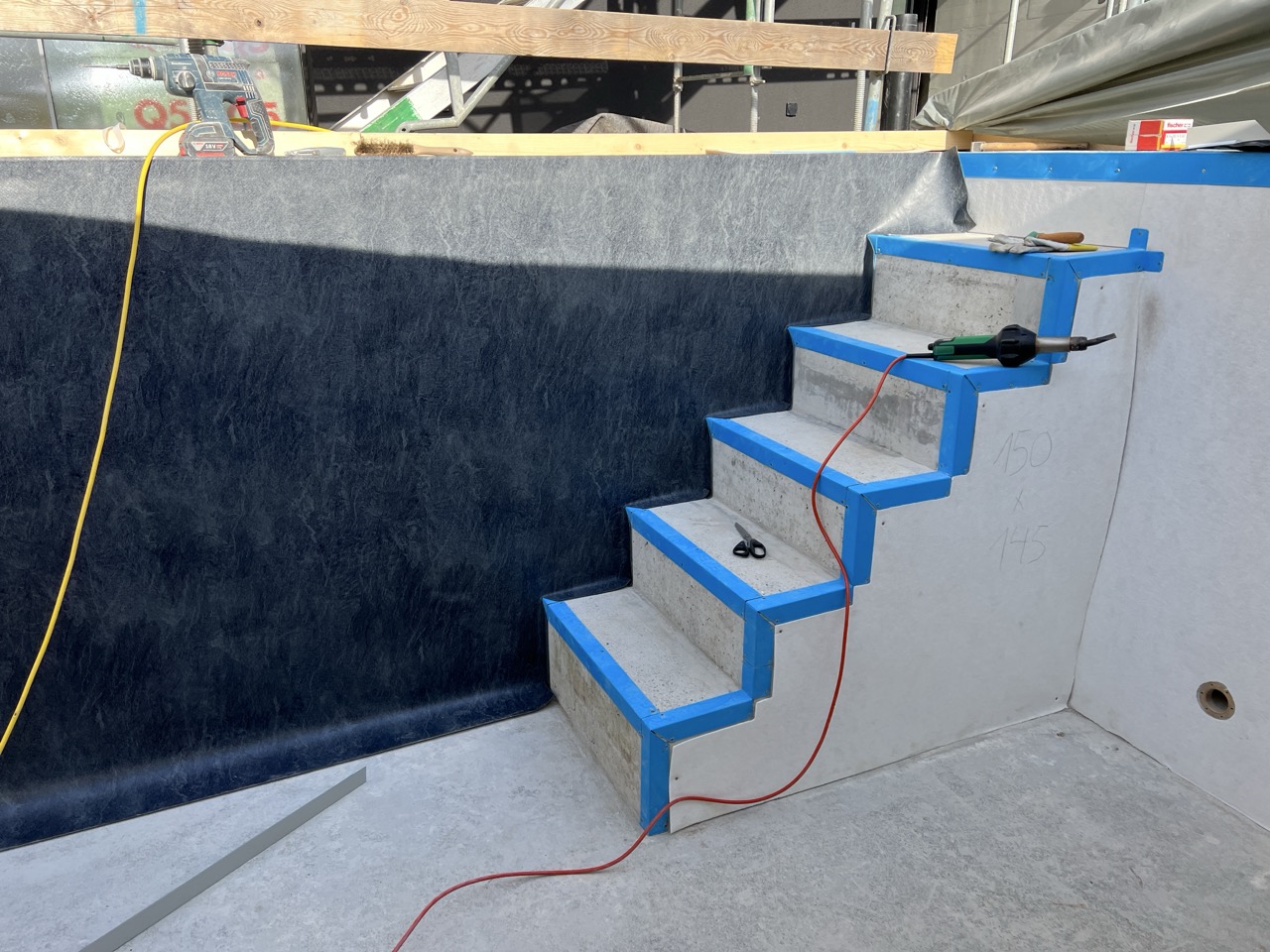 Wir durften für unseren Auftraggeber eine Folienauskleidung in einem neuen Betonpool erstellen.