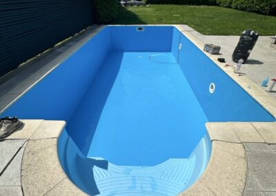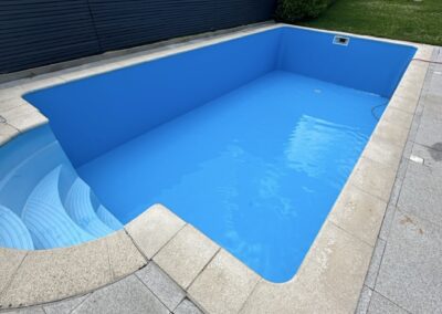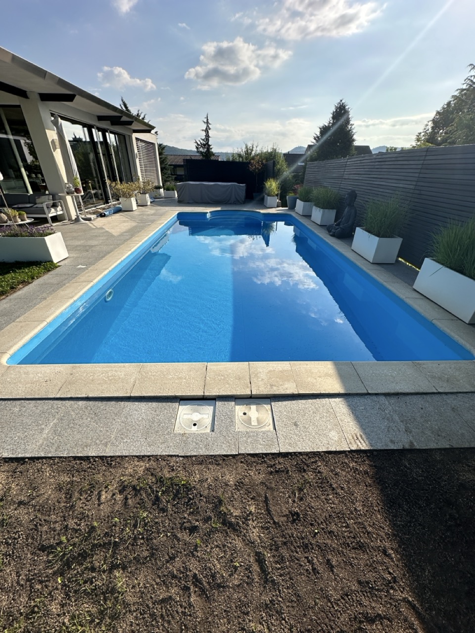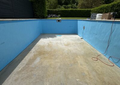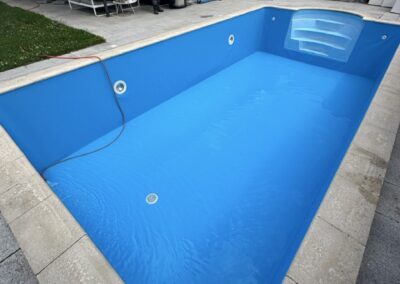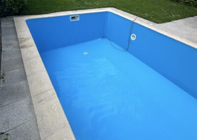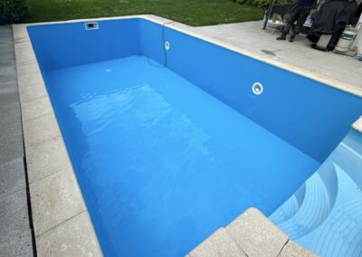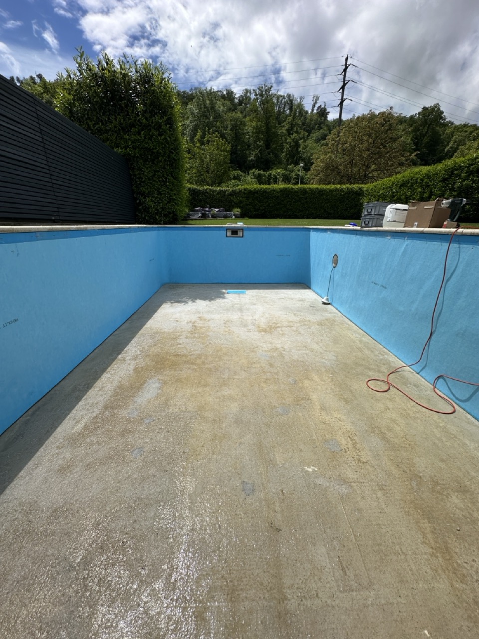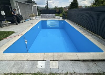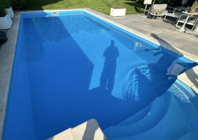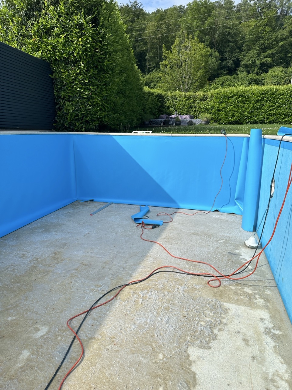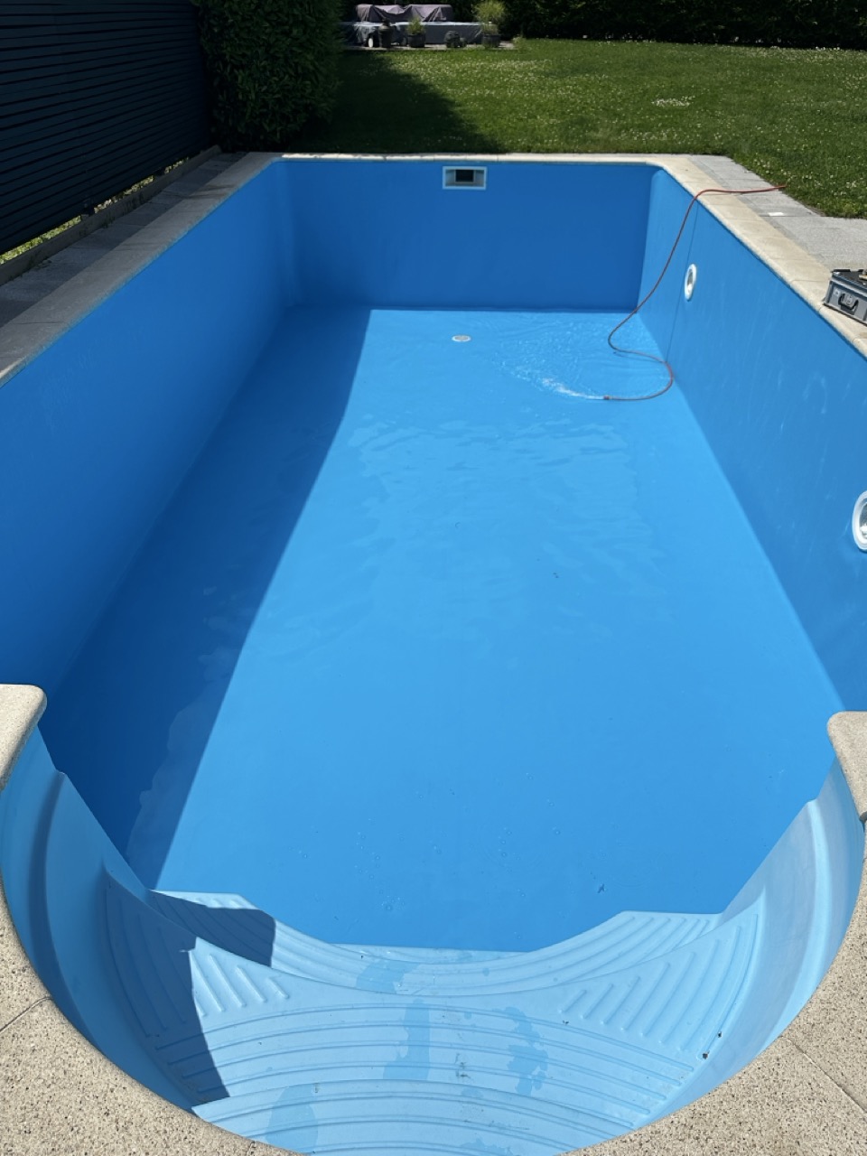 Wir durften für unseren Kunden sein Becken komplett sanieren, das heisst alte Folie und Vlies raus, Wände abschleifen und mit neuem Unterlagsvlies und Folie auskleiden.