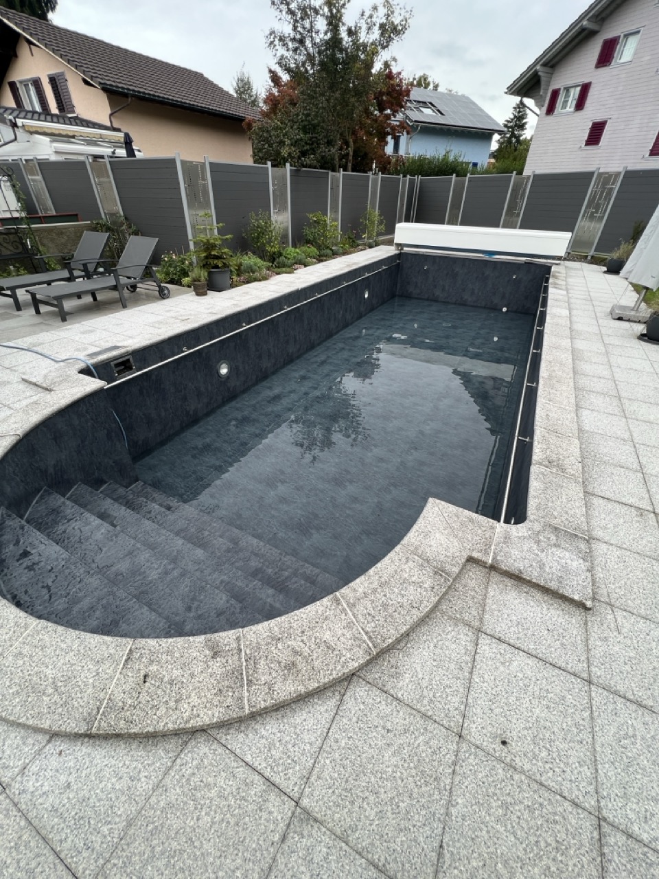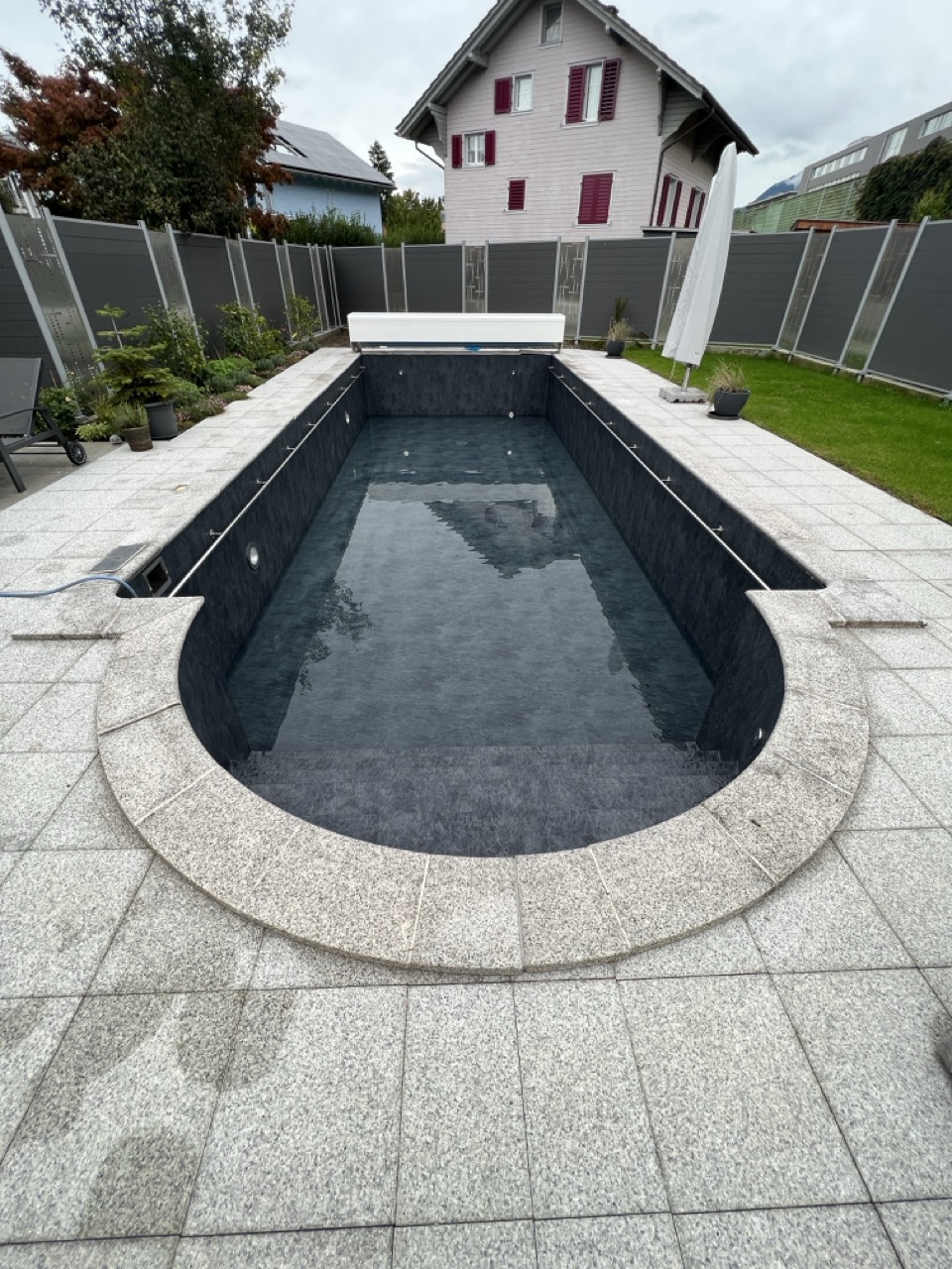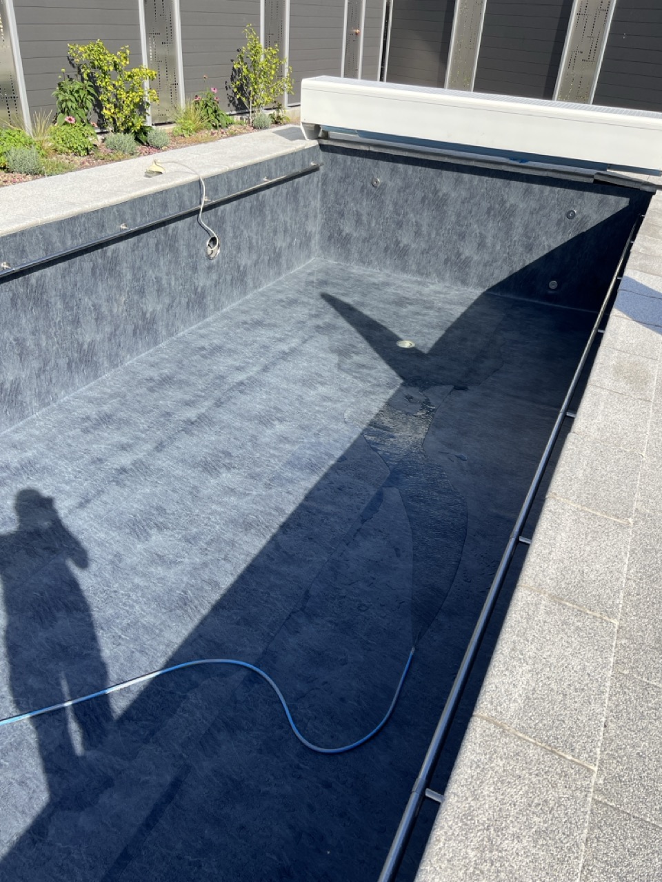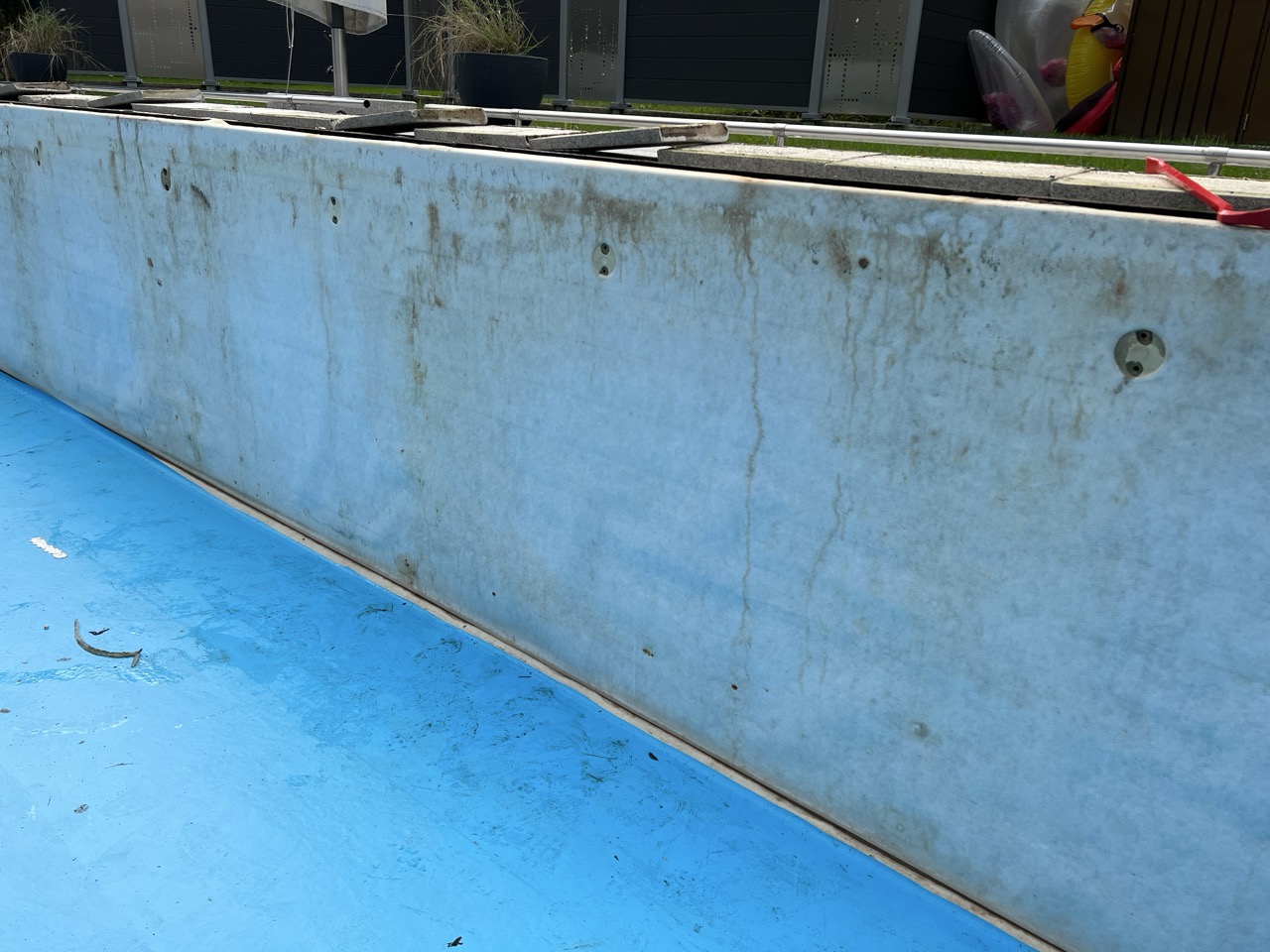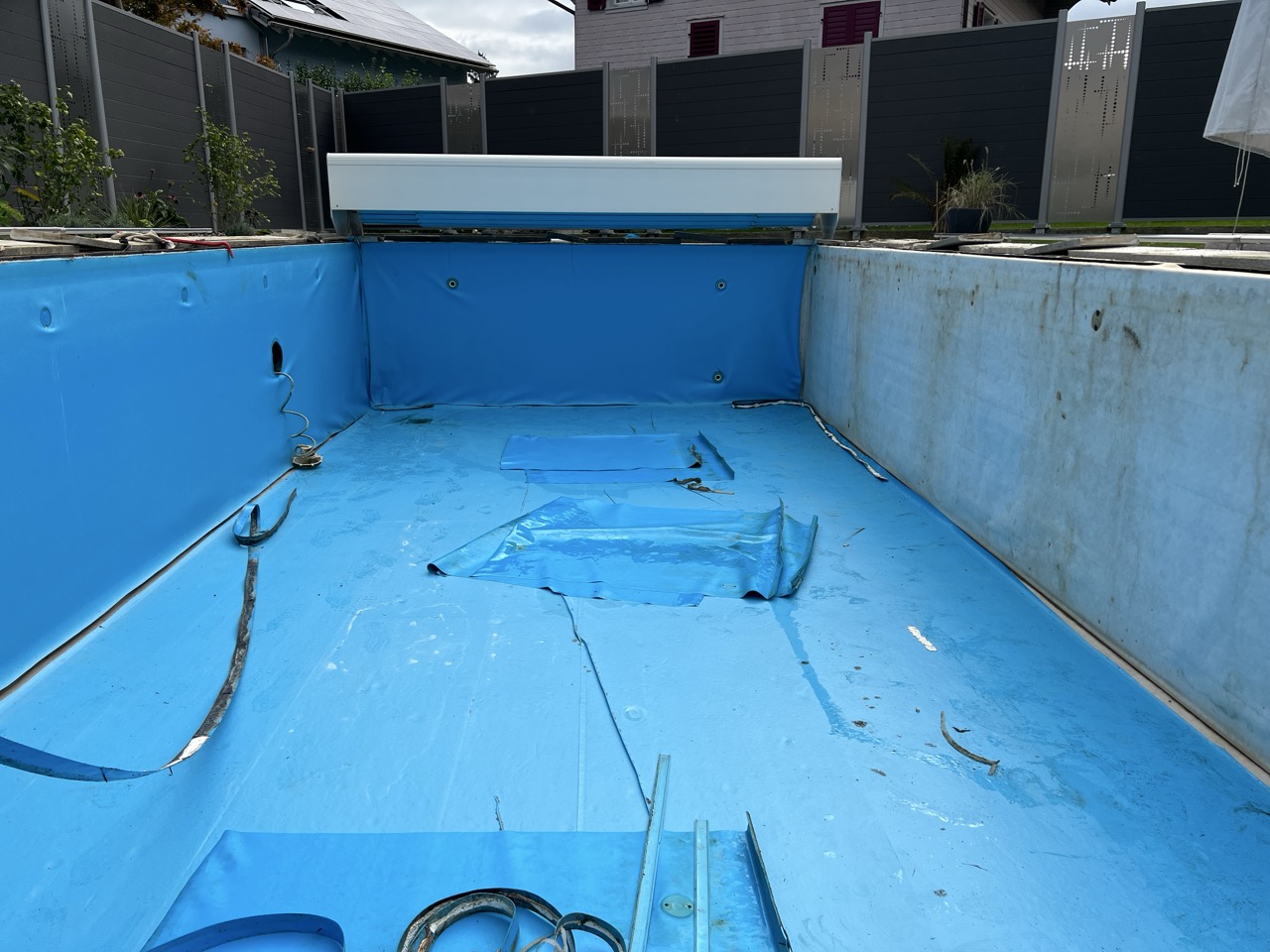 Wir durften für unseren Kunden das alte Holzbecken und die alte Folie mit einer neuen Folie im neuen Glanz erstrahlen lassen. des Weiteren haben wir mit farbigen Unterwasserscheinwerfern und neuen Umgebungsplatten das Becken noch weiter verschönert.
